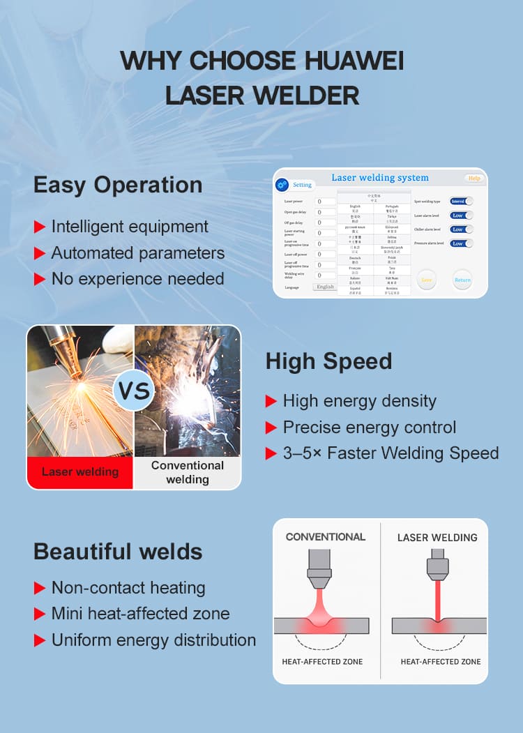 TheHUAWEI LASER 1500W 2000W 3000W Dura 4 in1 Laser Welding Machinaest summus perficienturHandheld Laser Welding Machinaordinatur ad stabilitatem diuturnam, multifunctionem facultatem, et summus qualitas metalli processus pro emptoribus industrialibus. HUAWEI LASER integratio, sectio, purgatio et politio in unum robustum.1500W 2000W 3000W Dura 4 in1 Laser Welding Machinafirmamenta commissuras lenis efficit, penetrationem validam, et curationem superficiei efficientis de ferro immaculato, chalybe, alumine, et aliis metallis. Fons laseris durabilis fibra eius firmum output cum reducta sustentatione requisita tradit, dum ergonomic handtenens consilium operationem consolatoriam et flexibilem sustinet. Ad continuum usum industriae aedificatum estHUAWEI LASER 1500W 2000W 3000W Dura 4 in1 Laser Welding Machinacertas praebet observantias ad officinas fabricandas, operas reparandas, ac necessarias productiones nativus.