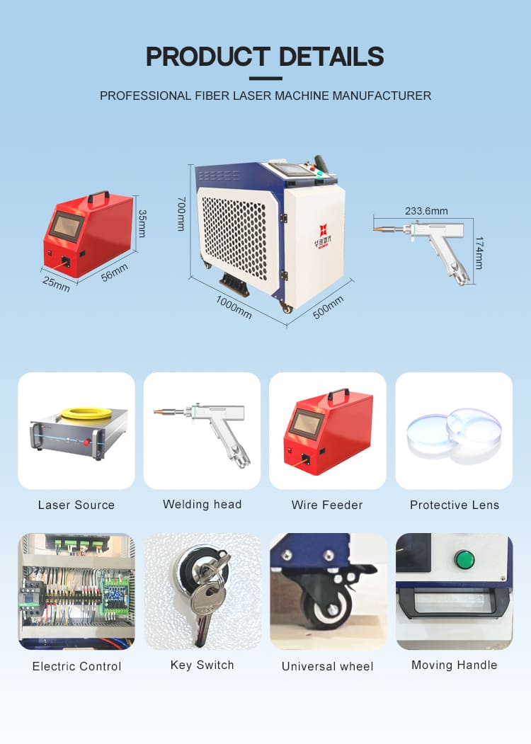 Haec HUAWEI LASER 1500W 2000W 3000W Dura 4 in1 Machina Laser Welding emptoribus dat certam, efficientem, et facilem solutionem operandi pro qualitate metalli glutino. In immaculato ferro, carbonis chalybe, et aluminio ad opus subtilissimum dispositum, teretes commissuras, profundi acumen, et minimam caloris corruptelam tradit. Eius manubrium leve autocinetum flexibilem operationem in spatiis strictis sustinet, eamque aptam officinis, fabricae fabricationis facit, ac munia reparat. Firma coacta et humilis sustentatio requisita, certas cotidianas observantias pro variis metallorum necessitatibus praebet.
