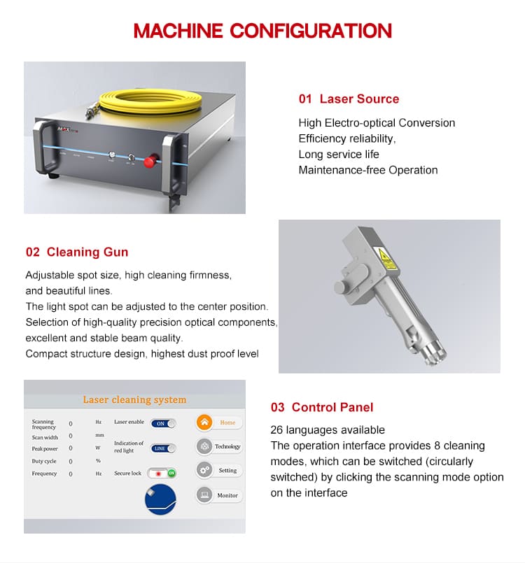 Sicut laser emundationem machinae non-contactus, partes subiectae non laedunt, nulla industria consumables salutaris et environmental tutela, et efficaciter resinam, oleum, maculas, sordes, rubiginem, tunicam, clapping et pingunt ex superficie ad purgandum requisita in complexu exemplaris ac subtilis positionis in agro processus industriae, altiorem munditiem gradum effectus purgationis consequi ac fructus producere.