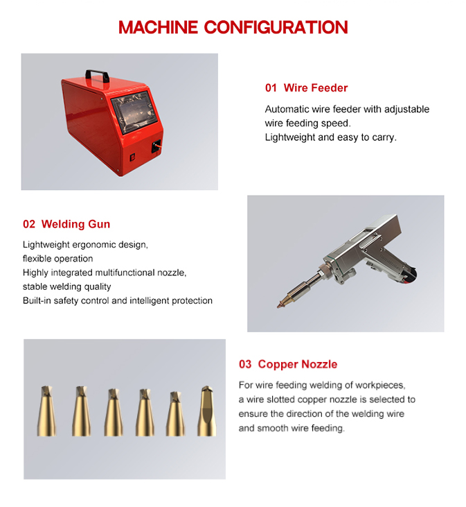 TheHUAWEI LASER Handheld Laser Welding Machinaconstituebant liberare uniformem cucurbitationem observantiam pro cotidianis metallis fabricandis necessitatibus. HUAWEI LASER 800W 1200W Congruunt Air Refrigerium Handheld Welding Machinacommissuras mundissimas firmas praebet, output stabilis, ac leves tractationes ad fabricam, reparationem, et ad opus institutionis praebet.